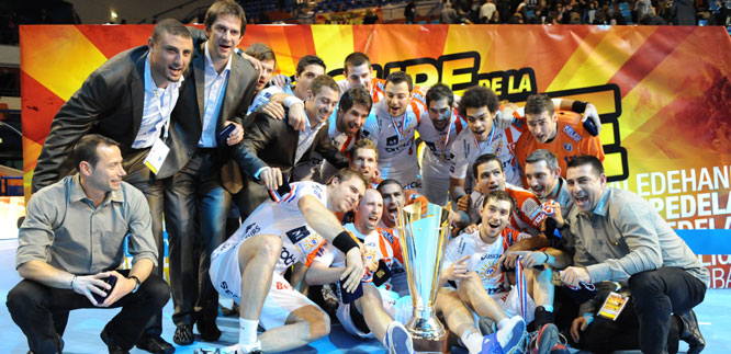 Mené seulement lors de la première minute, Montpellier n’a jamais vraiment douté lors de cette finale de la Coupe de la Ligue. A l’image de Richard Stochl, homme du match et portier décisif lors de cette partie (18 arrêts), c’est l’ensemble héraultais qui a mis la main sur la rencontre, de A à Z. Sûrs de leur force, les protégés de Patrice Canayer ont imposé un rythme élevé à des Chambériens un peu émoussés par leurs dernières semaines de compétition. Et si, à la mi-temps (13-17), l’espoir était encore permis pour les Savoyards, le retour des vestiaires leur fut fatal (16-22 à la 39’). Les banderilles précises de Samuel Honrubia (5/5), la puissance de Nikola Karabatic (6 buts) ou encore la finesse de David Juricek auront fait vaciller les hommes de Philippe Gardent. Malgré les efforts de Damir Bicanic (11/14) et de Karel Nocar (4/6), les leaders du championnat ne remporteront pas ce trophée qui leur échappe depuis 2002.