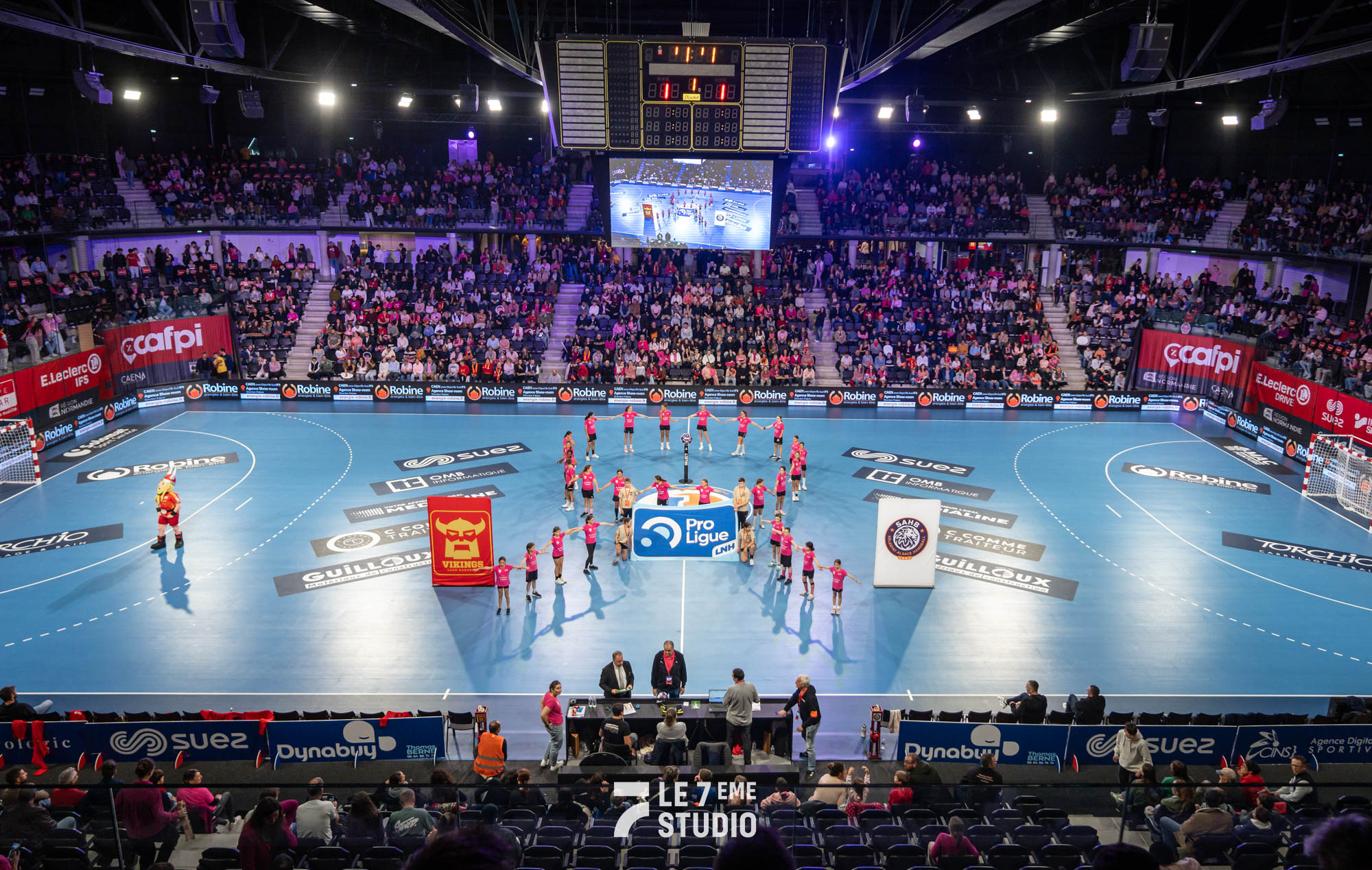 L’entrée des joueurs a été marquée par une initiative spéciale : 25 joueuses du club de Colombelles ont formé un ruban rose, emblème international de la lutte contre le cancer du sein. Cet événement a été organisé en collaboration avec le comité du Calvados, les clubs féminins de handball locaux, ainsi que le club de Colombelles.