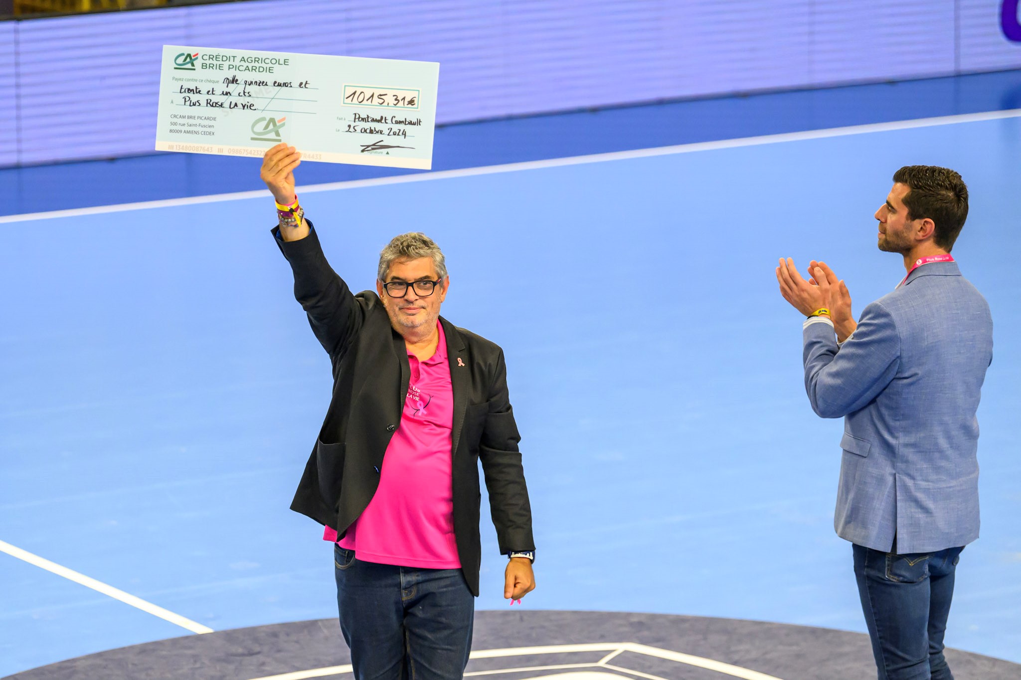À l'occasion du mois de sensibilisation au cancer du sein, le Pontault-Combault Handball a reconduit une vente aux enchères, et ce sont plus de 1000€ qui ont été récoltés pour l'association Plus Rose La Vie basée en Seine-et-Marne et ayant pour mission de sensibiliser les femmes à la prévention contre le cancer du sein dans toute la France.