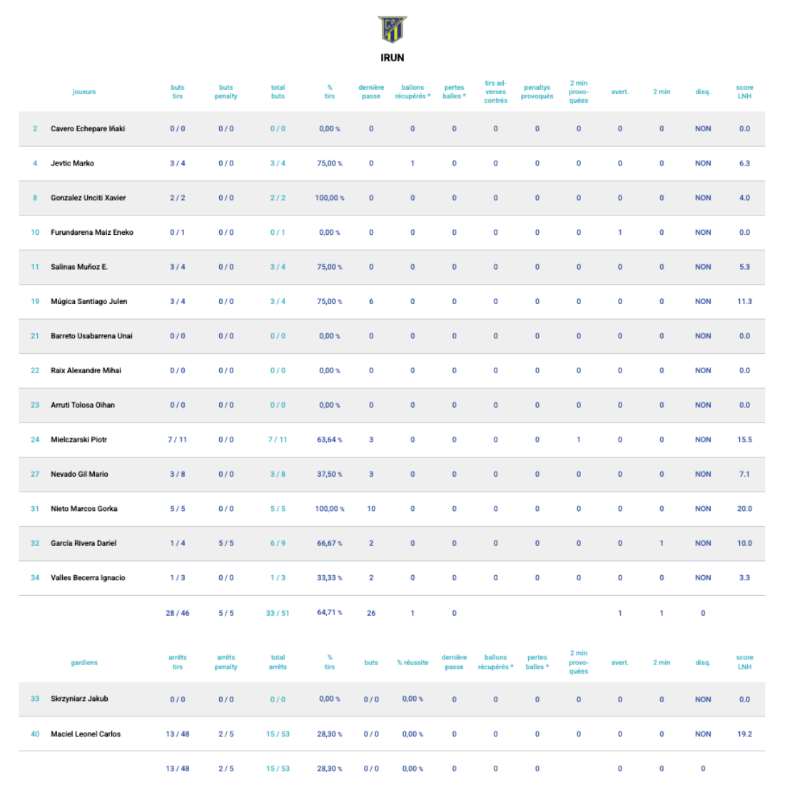 Érick MATHÉ (entraîneur du MHB) : "Je trouve que c'était un match très plaisant, très intensif, très agréable à voir jouer. Irun a beaucoup couru. On gagne 13-11 sur le grand espace. On a rarement eu une telle adversité sur ce domaine-là. Je félicite les deux équipes pour le spectacle proposé."