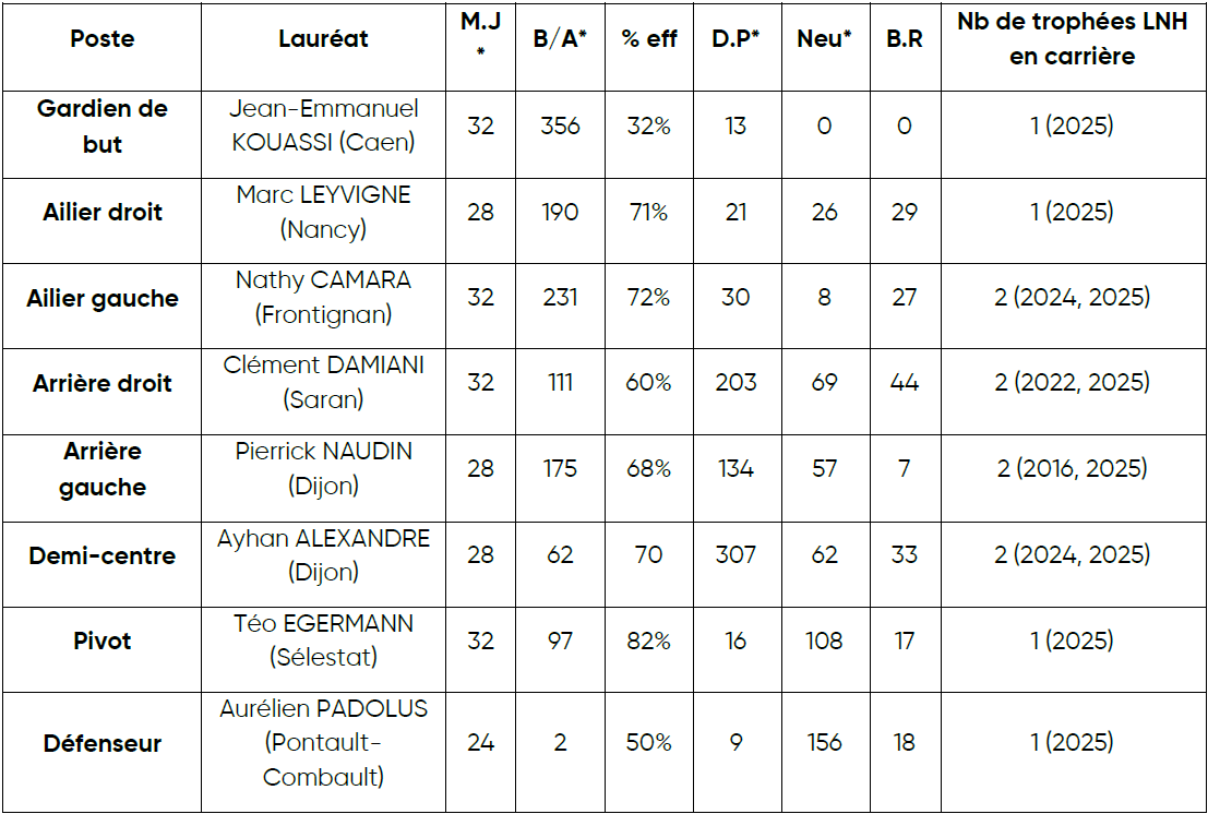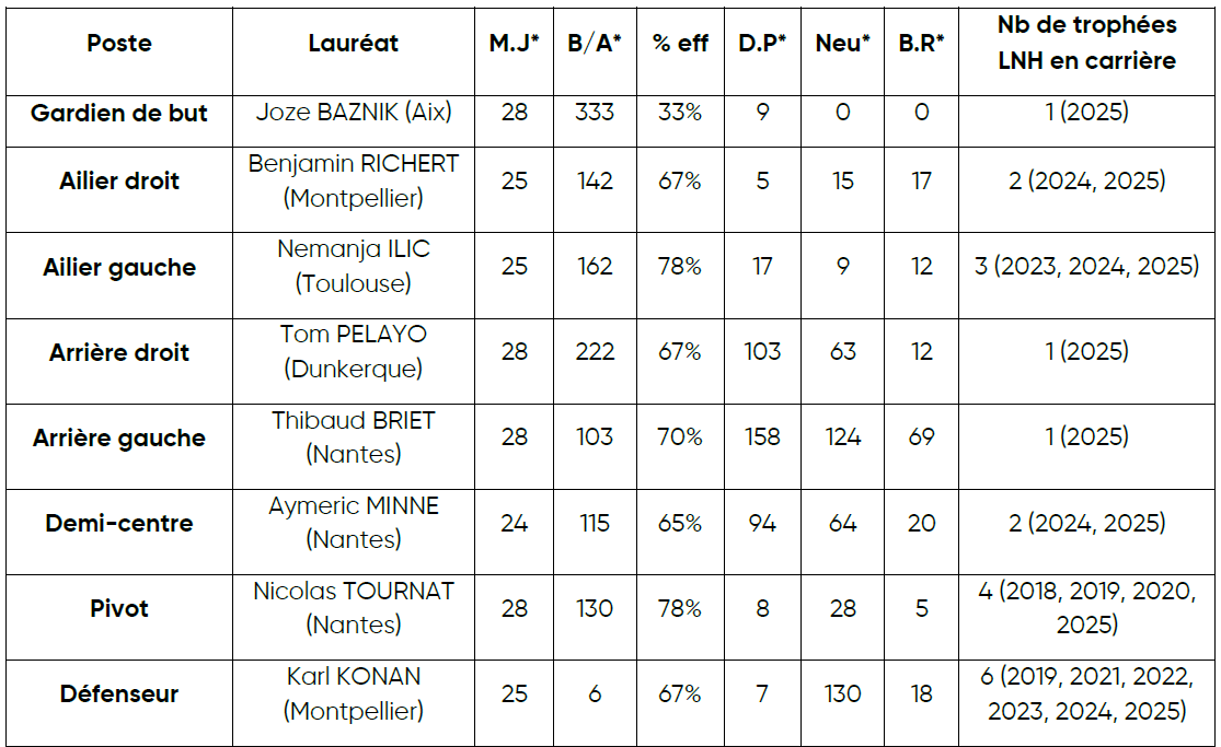 PROLIGUE : l’équipe-type 2024/2025- Champion de France 2025, Dijon est le seul club à placer deux joueurs dans l’équipe-type, dont son capitaine Pierrick Naudin, 35 ans, qui remporte un nouveau trophée neuf ans après son trophée de meilleur joueur de ProLigue 2016.