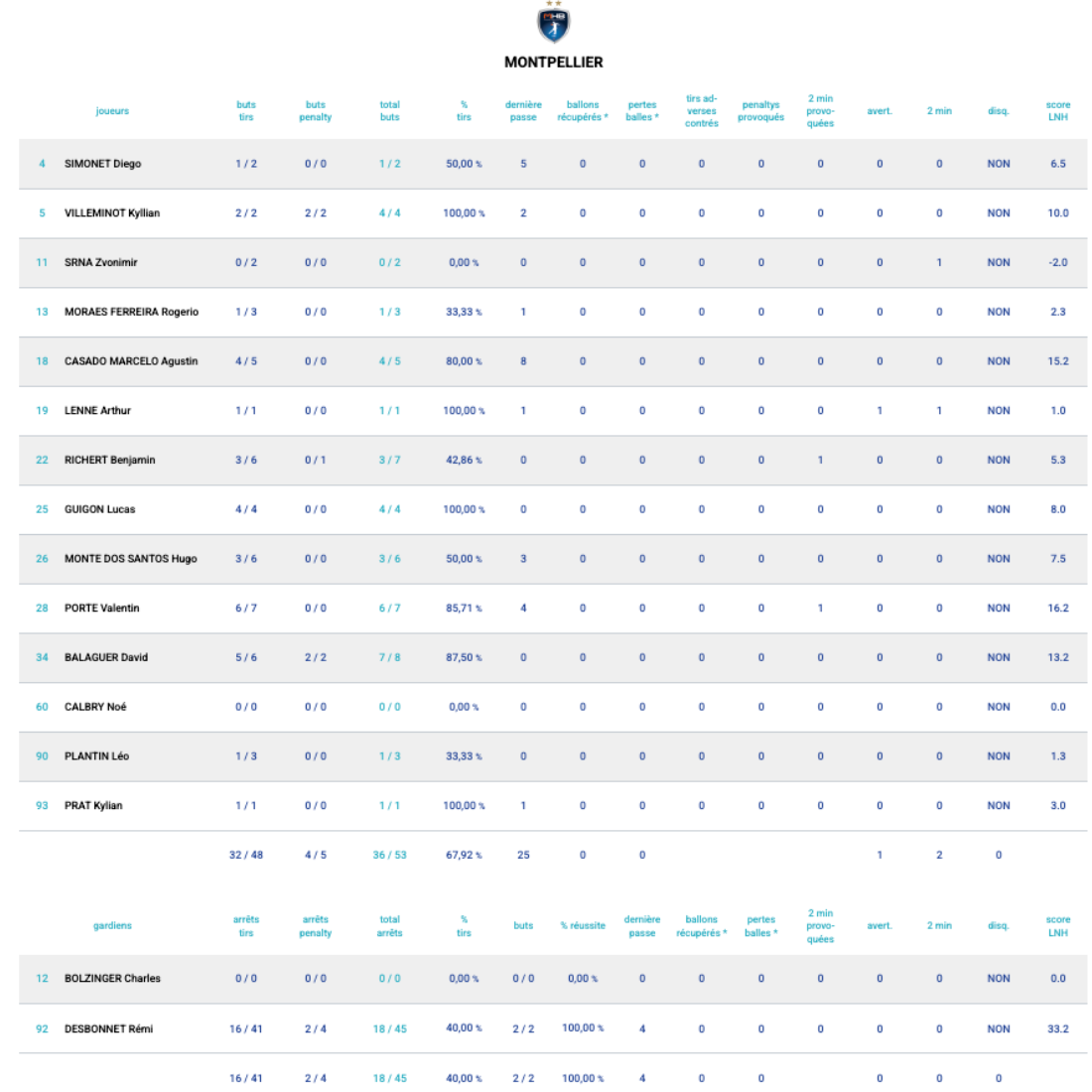 Desbonnet :18 arrêts, Guigon : 4/4
