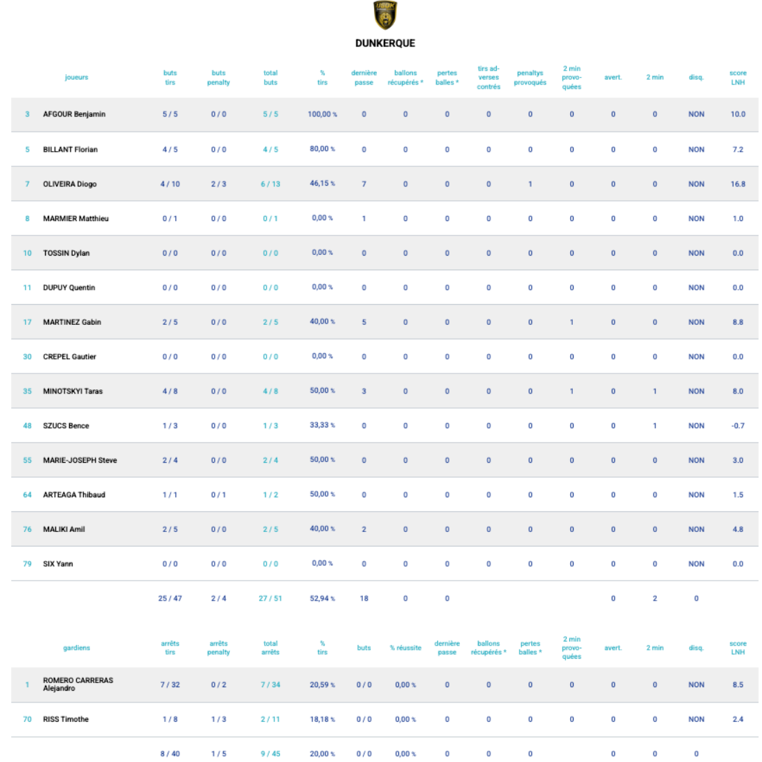 Les statistiques de Dunkerque