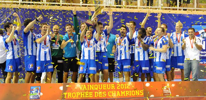 L’histoire semble se répéter pour Dunkerque puisque c’est sur un déroulement identique à celui de la finale de la Coupe de France remportée en 2011 que les partenaires du décisif Vincent Gérard (13 arrêts) ont fait vaciller une équipe de Chambéry qui aurait pu, dans le money-time, elle aussi s’adjuger cette première récompense de la saison. Mais avec nerfs, détermination et réussite, les hommes de Patrick Cazal ont forcé le destin. Devant une grande partie de cette bagarre qui mit un peu de temps à se débrider (5-5 à la 5’), les partenaires du meilleur joueur du week-end Erwan Siakam ont progressivement (7-10 à la 15’) pris le dessus avant de voir leurs adversaires revenir à la mi-temps (10-12). Dans le second acte, les intentions étaient les mêmes et les équipes se rendaient coups pour coups. Néanmoins, à 15 minute du terme, l’avantage était pour l’USDK (17-22). Malgré ce matelas, Dunkerque n’était pas serein tant et si bien que Jalel Touati était exclu quelques minutes plus tard sur carton rouge (54’). Le tournant du match ? Presque puisque derrière, Chambery poussait fort. Trop peut-être puisqu’à son tour Benjamin Gille sortait (56 sur la même sanction) puis Karel Nocar. A-2 joueurs les partenaires d’Olivier Marroux faisaient de la résistance mais Dunkerque ne tuait pas la partie. Au terme du temps réglementaire l’égalité était parfaite. Venait alors la séance de penalties. Vincent Gérard entrait en piste et sortait le grand jeu face à Cédric Paty puis Guillaume Gille. Kornèl Nagy ratait aussi pour Dunkerque. Mais au final Sébastien Bosquet inscrivait le dernier but. Dunkerque soulevait le Trophée !